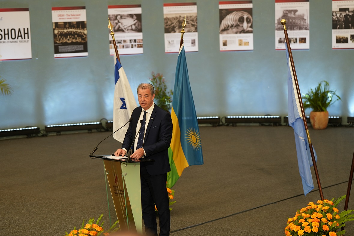Ambasaderi wa Israel Dr. Ron Adam yavuze ko ubwo ari umwe mu bagize isekuru cya kabiri cy’abantu bakomoka ku barokotse Jenoside yakorewe Abayahudi.