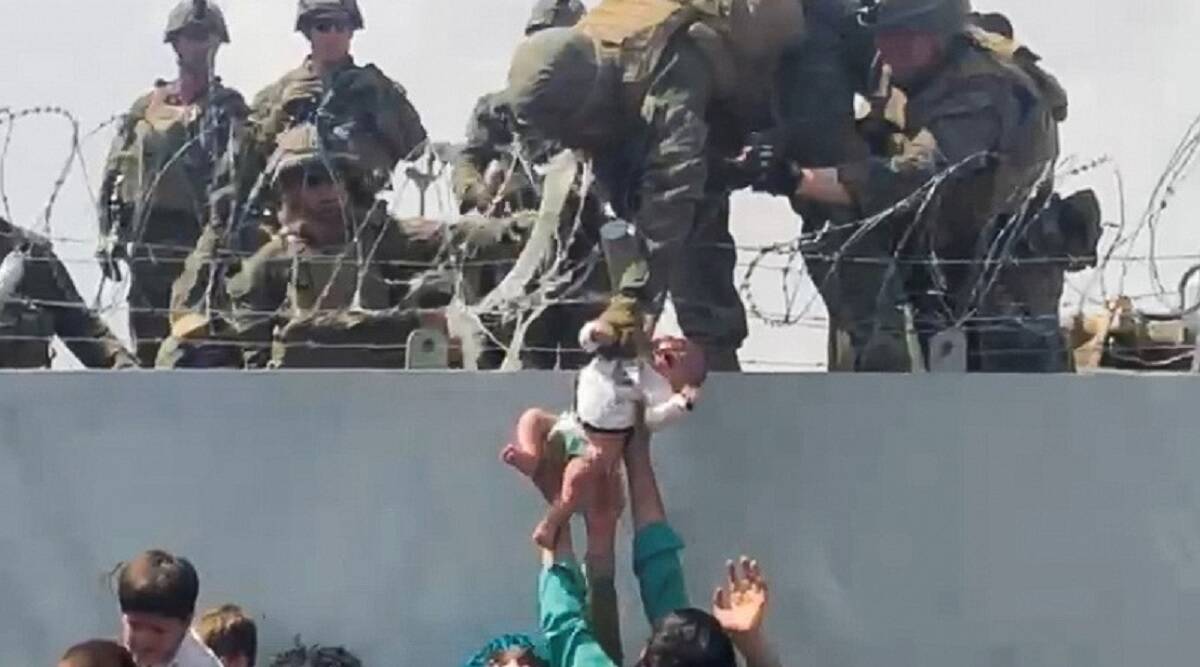 Ibyo byashushanywa n’ifoto yafatiwe ku kibuga cy’indege cyitiriwe Hamid Karzai i Kabul, igaragaza umugore waherezaga umwana we umusirikare wa Amerika ngo amwitwarire wenda azabaho neza, nubwo nta cyizere cy’uko bazongera kubonana.