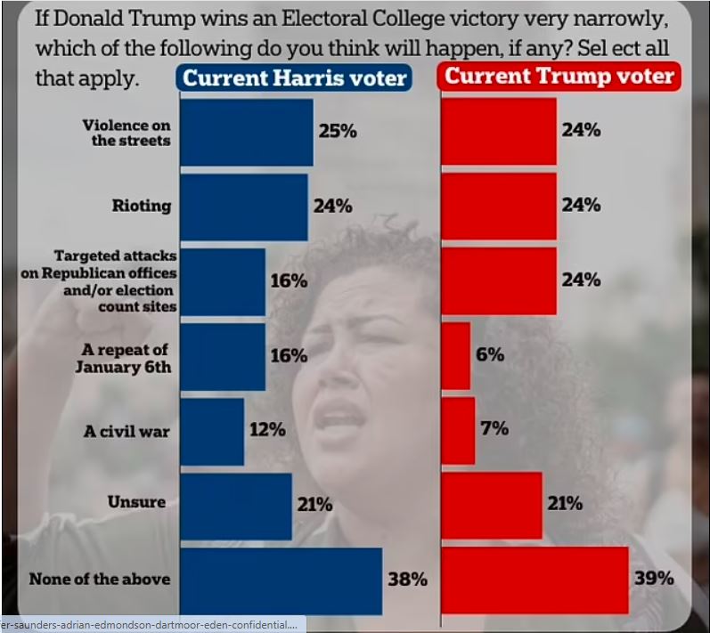 Abashyigikiye Harris bo bemeza ko azatsinda, ariko bakongeraho ko Trump atazabyemera ndetse azagana inkiko cyangwa agasaba abantu be kongera kwigaragambya.