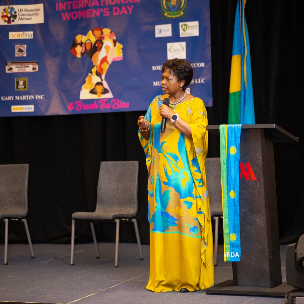 Abihuriyeho n’Uhagarariye u Rwanda muri Amerika witwa Prof Mathilde Mukantabana.