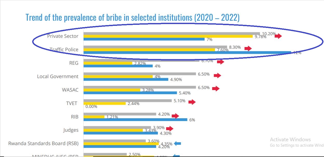 Ugeraranyije no mu mwaka wa 2012, ruswa yari 12.69% ariko mu mwaka wa 2022 abayitanze cyangwa abayisabye bangana na 29.10%, bikerekana ko yazamutse.