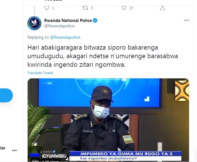 Yari yatumiwe mu kiganiro cyasesenguraga uko ibintu byifashe muri Kigali muri iki gihe iri muri Guma mu Rugo.