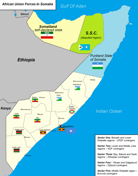 Ingabo z’Umuryango w’Afurika yunze ubumwe ziri muri Somalia ziganjemo iz’Uburundi, Uganda na Kenya.