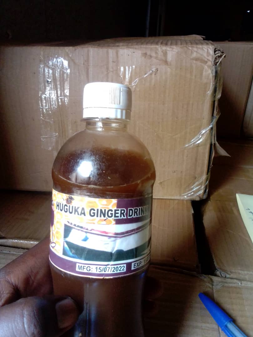 Iwe bahafatiye Litiro 10,144 z’inzoga Polisi na Rwanda FDA bavuga ko zitujuje ubuziranenge zitwa Huguka Ginger Drink.