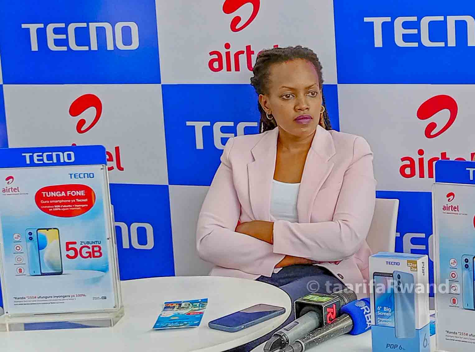 Sabuwera Grâce ushinzwe imenyekanishabikorwa muri Airtel Rwanda avuga ko bishimiye gukorana na Tecno mu gufasha Abanyarwanda kurangiza umwaka bafite telefoni igezweho kandi bakayikoreshaho murandasi ihendutse.