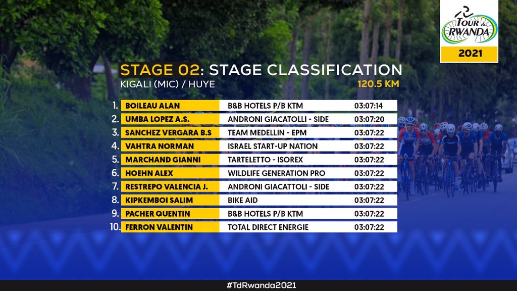 Ni mu gihe Sanchez Vergara ukinira Team Medellin wegukanye agace ka Kigali- Rwamagana kuri iki Cyumweru, yaje ku mwanya wa gatatu akoresheje 3hh07’22’’. Bivuze ko uwa mbere yamurushije amasegonda umunani.
