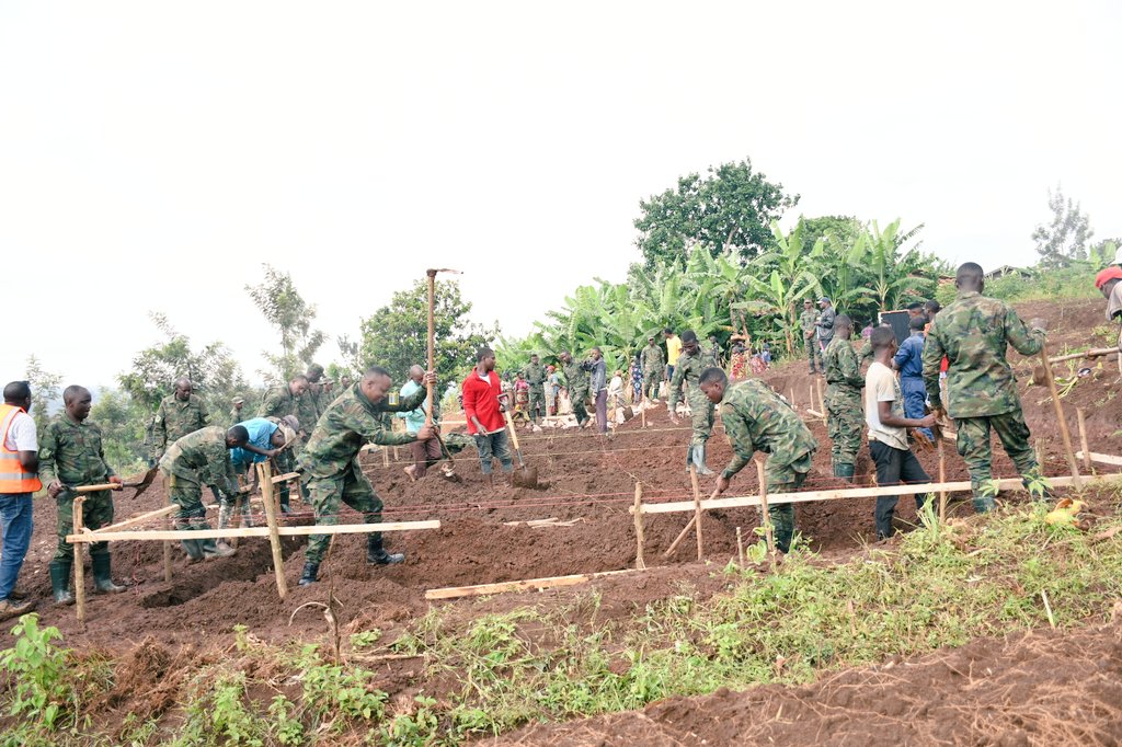Abapolisi n’abasirikare, baba abakuru n’abato mu mapeti, bahuriye hirya no hino mu Rwanda bifatanya n’abaturage gusiza ibibanza by’ahazubakwa ibikorwaremezo bifitiye benshi akamaro.