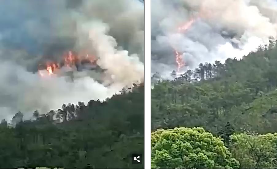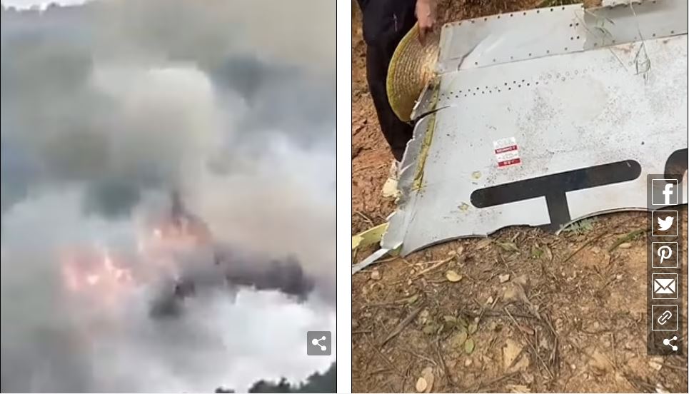 Amafoto yamaze kujya ahagaragara arerekana indege yaguye ahantu hasa n’ahari urutoki mu Misozi ituriye Umujyi wa Wuzhou.