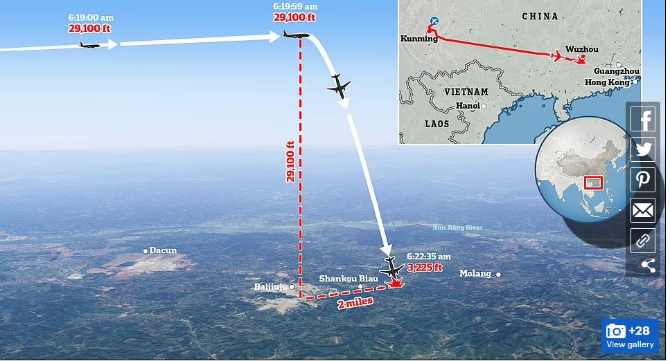 Iriya ndege yari ifite ibirango bya MU5735 ikaba yavaga mu Mujyi wa Kunming mu Ntara ya Guangzi.