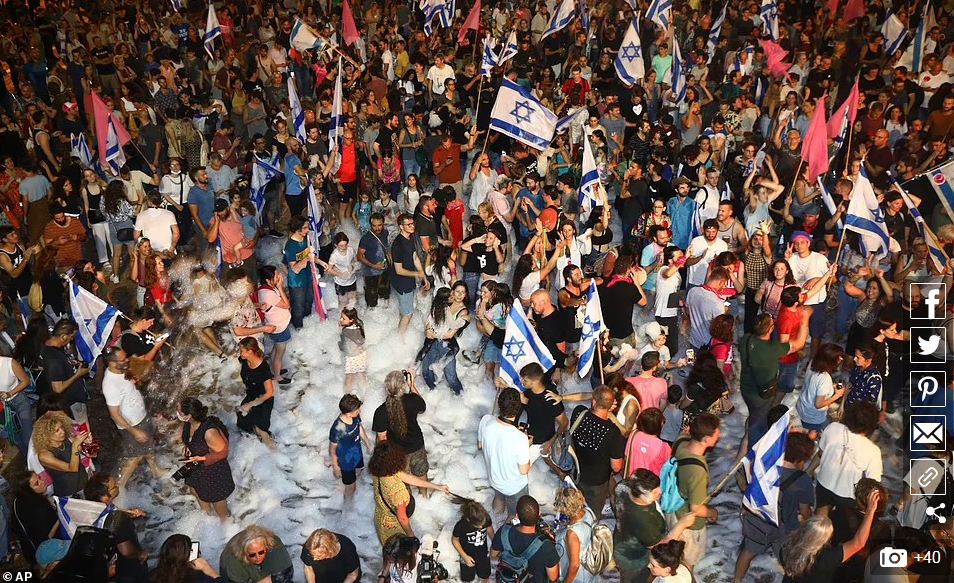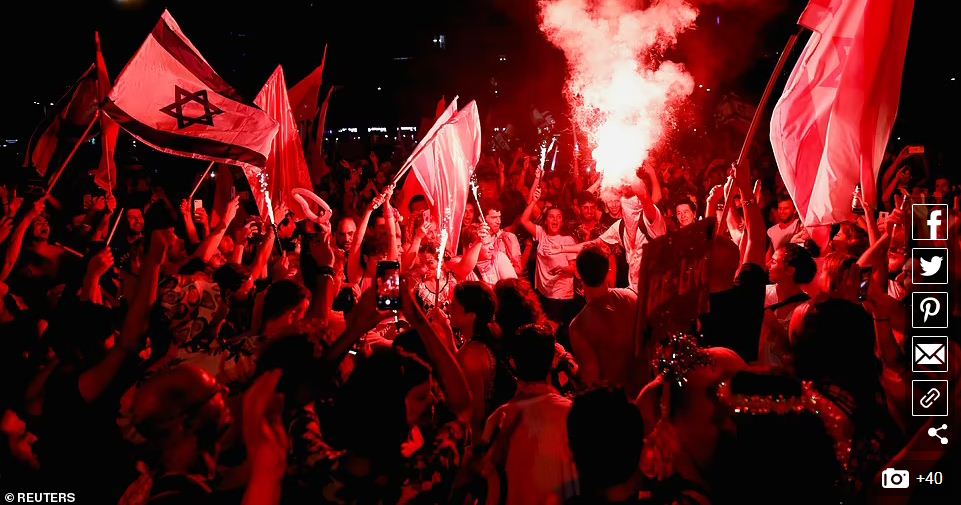 Minisitiri w’Intebe Naftali Bennett akirangiza kurahirana n’abagize Guverinoma ye, abaturage bamushyigikiye bari ku mbuga yitiriwe Yitzhak Rabin (Rabin Square) baririmba, babyina banasangira ikirahuri.