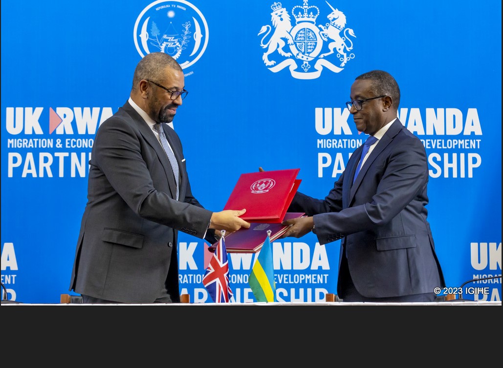 Ni nayo mpamvu kuri uyu wa Kabiri inyandiko y’ayo masezerano yashyizweho umukono na Minisitiri w’ububanyi n’amahanga w’u Rwanda Dr.Vincent Biruta ari kumwe na mugenzi we James Cleverly ushinzwe ibibera imbere mu Bwongereza.