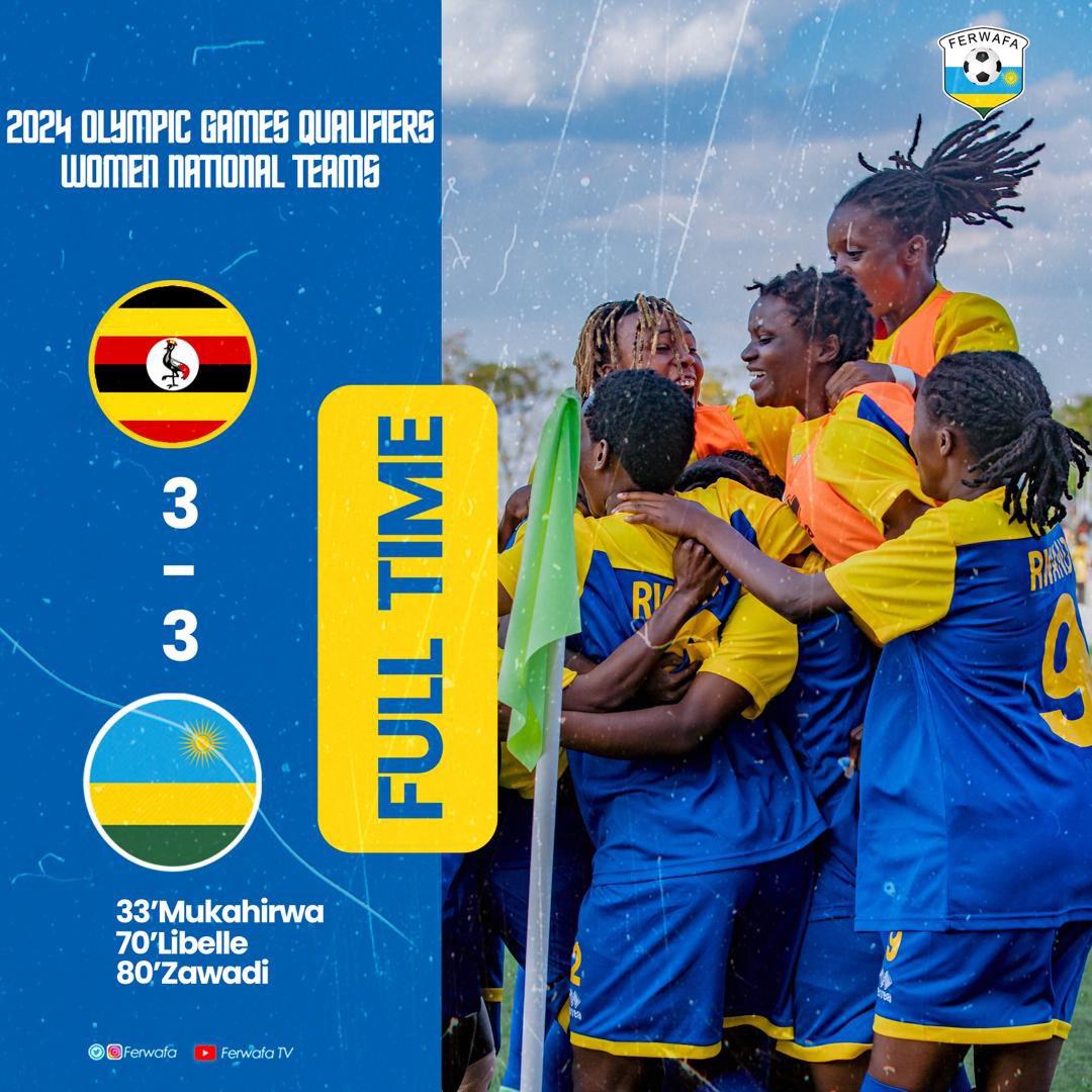 Mu mukino wo gushaka itike yo kujya mu mikino Olempike izabera i Paris mu Bufaransa  mu mwaka wa 2024, ikipe y’u Rwanda y’Abagore ikina umupira w’amaguru yaraye inganyije na Uganda ibitego 3-3.