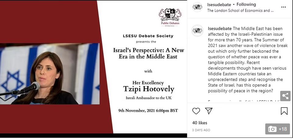 Ubwo yari arimo atanga ikiganiro muri imwe muri Kaminuza zo mu Bwongereza Ambasaderi wa Israel mu Bwongereza Madamu Tzipi Hotovoly yasohowe n’abashinzwe kumurinda nyuma y’uko urubyiruko rw’AbanyaPalestine rwasunitse urugi rushaka kumusumira.