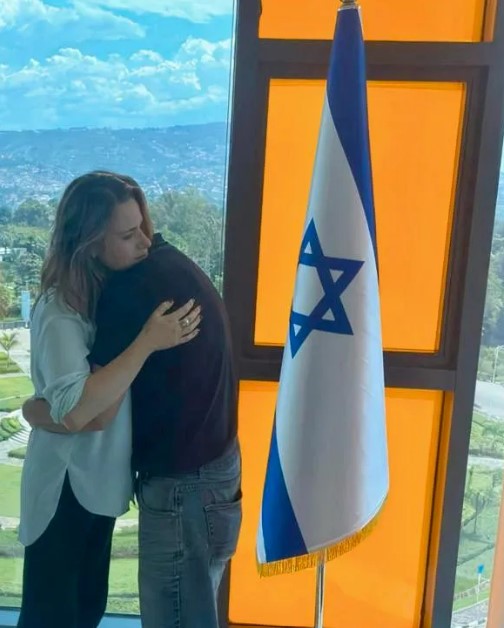 Ku rukuta rwe wa X, Einat Wiess umaze igihe gito ahagarariye Israel mu Rwanda yahashyize ifoto yahobeye umugabo we Aviad, amusazeraho ngo asubire mu gihugu cye kurwana na Hamas.