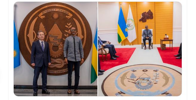 Rao Hongwei wari Ambasaderi w’u Rwanda yakiriwe na Perezida Kagame mu Biro bye kugira ngo amusezereho kuko yushe ikivi cye mu Rwanda.