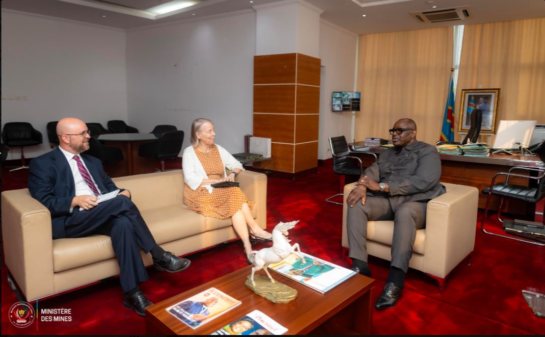 Minisitiri Louis Watum Kabamba ushinzwe ubucukuzi bw’amabuye y’agaciro muri Guverinoma ya Repubulika ya Demukarasi ya Congo yakiriye mu Biro bye Ambasaderi wa Amerika Lucy Tamlyn.