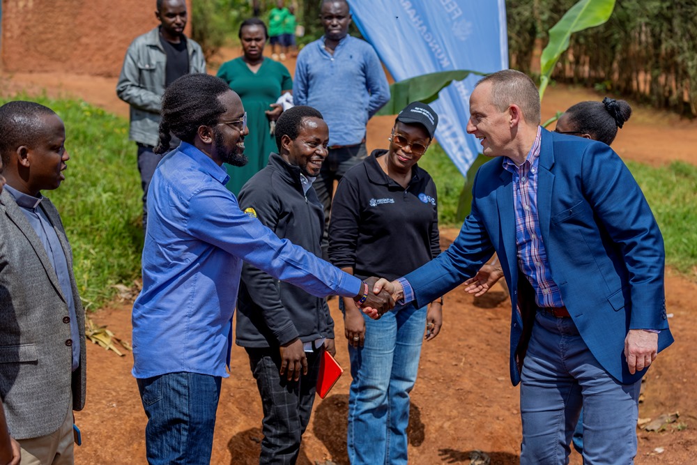 Ambasaderi Kneedler yaganiriye n’abafatanyabikorwa ba Aubin Produce International Ltd biganjemo abafite ubumuga, urubyiruko n’abagore.
