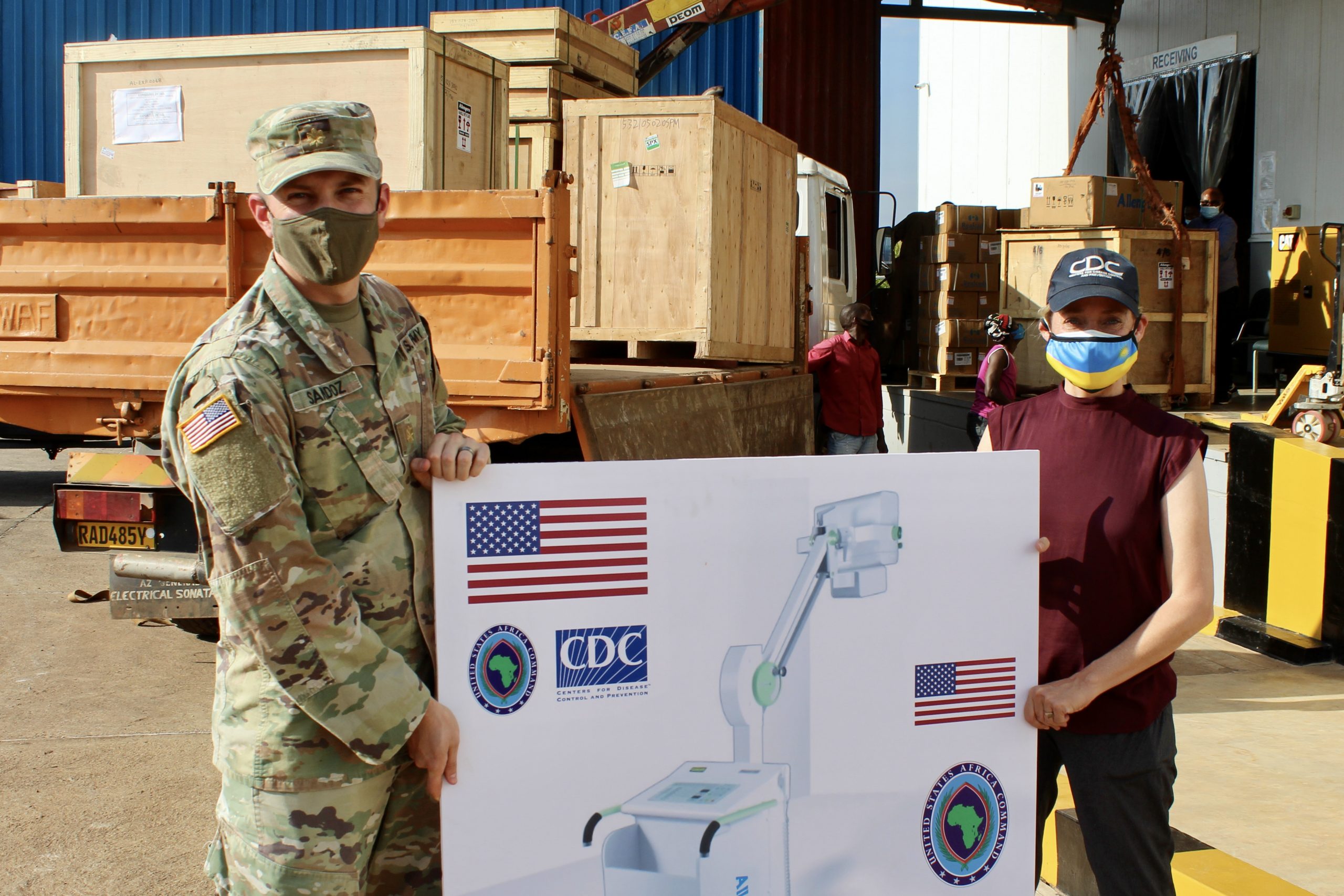 Leta Zunze Ubumwe za Amerika yashikirije Ikigo cy’Igihugu Gishinzwe Ubuzima (RBC) imashini eshanu za X-ray zifite agaciro ka miliyoni 220 Frw, zizafasha mu kongera ubushobozi bwo gupima no kuvura abarwayi ba COVID-19.