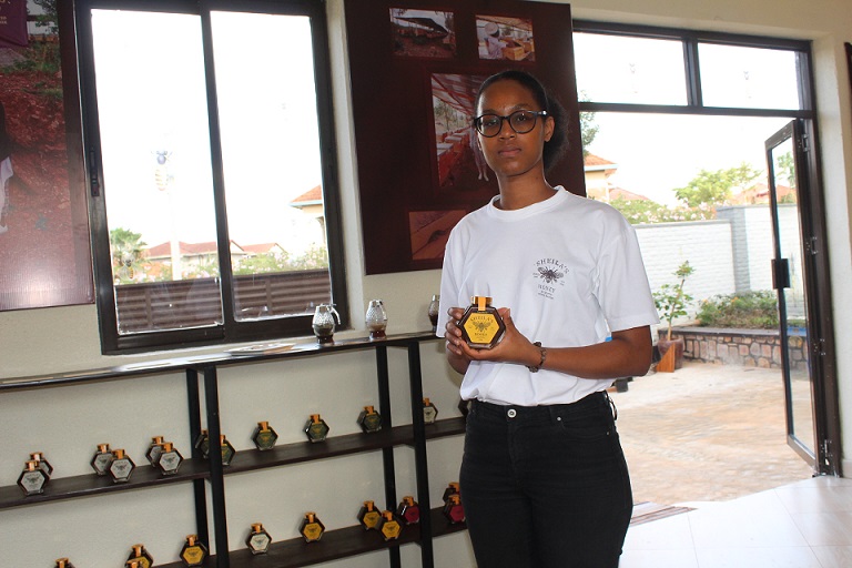 Ati: “ Nasanze ngomba kugira umwihariko mu buki bwanjye. Mbwongeramo urusenda, sesame, macadamia n’ibindi kandi nkabikora ngamije gufasha n’abahinzi ba biriya bihingwa kubona isoko.”