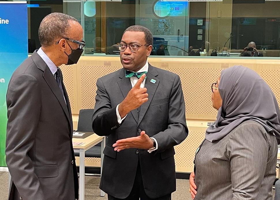 Perezida wa Banki Nyafurika y’Iterambere Dr Akinumi Adesina yanditse kuri Twitter ko aherutse kuganira na Perezida w’u Rwanda Paul Kagame na mugenzi we uyobora Tanzania Madamu Samia Suluhu Hassan bemeranya ubufatanye mu kubaka gari ya moshi zizahuza ibi bihugu byombi hakiyongeraho u Burundi na Repubulika ya Demukarasi ya Congo.