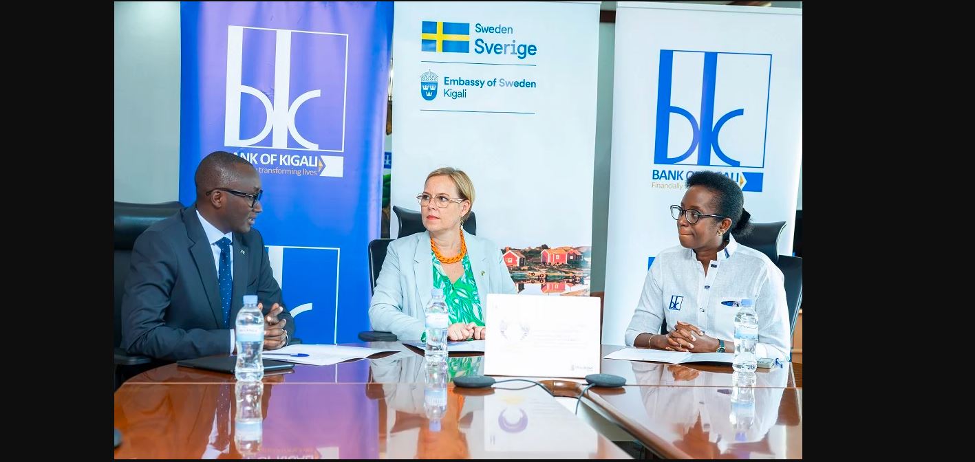 Ubuyobozi bwa Banki ya Kigali bwaraye businyanye na Ambasaderi wa Suède mu Rwanda amasezerano ya miliyoni $10 azatangwa nk’inkunguzanyo yo gushyigikira imishinga mito n’imishinga iciriritse mu Rwanda.