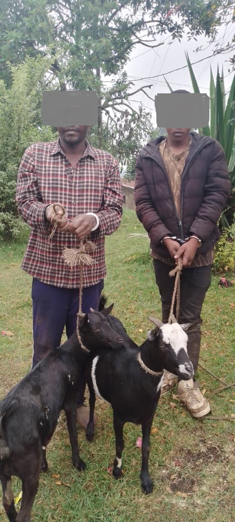 Mu rukerera rwo kuri uyu wa 9 Kanama, Polisi ikorera  mu Murenge wa Cyanika mu Karere ka Burera k’ubufatanye n’abaturage yafatiye mu cyuho abagabo babiri bari bibye ihene ebyiri z’umuturanyi.