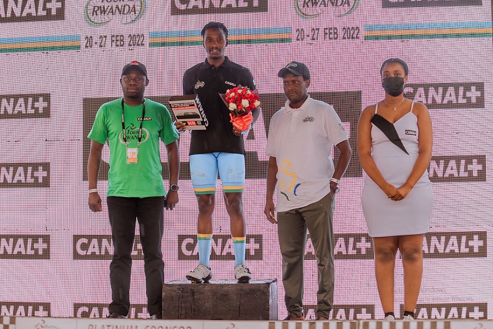 CANAL+ RWANDA niyo yambitse umwambaro w’icyubahiro Uhiriwe Byiza Renus, Umunyarwanda witwaye neza mu gace ka mbere ka Tour du Rwanda kabereye mu Mujyi wa Kigali.
