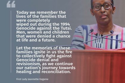 Madamu Jeannette Kagame yifatanyije n’abagize Umuryango w’abahoze ari abanyeshuri barokotse Jenoside yakorewe Abatutsi, GAERG, ubwo bibukaga imiryango y’Abatutsi yazimye muri Jenosid...