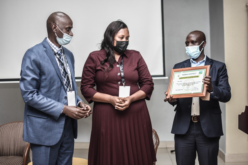 Umuyobozi w’agateganyo w’Akarere Ruhamyambuga Olivier, yashyikirije ishimwe Croix Rouge y’u Rwanda, kubera ubufatanye yakomeje kugaragaza mu gukemura ibibazo bitandukanye muri aka karere.