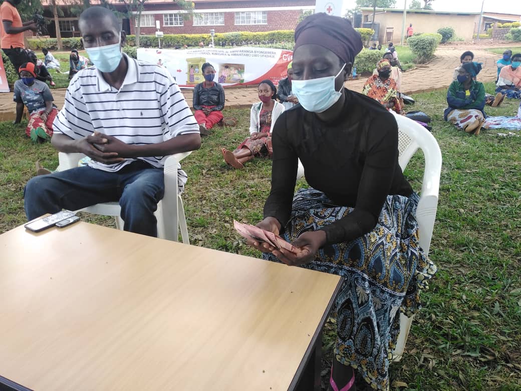 Umwe mu bahawe inkunga arimo kubara amafaranga nyuma yo kuyabikuza