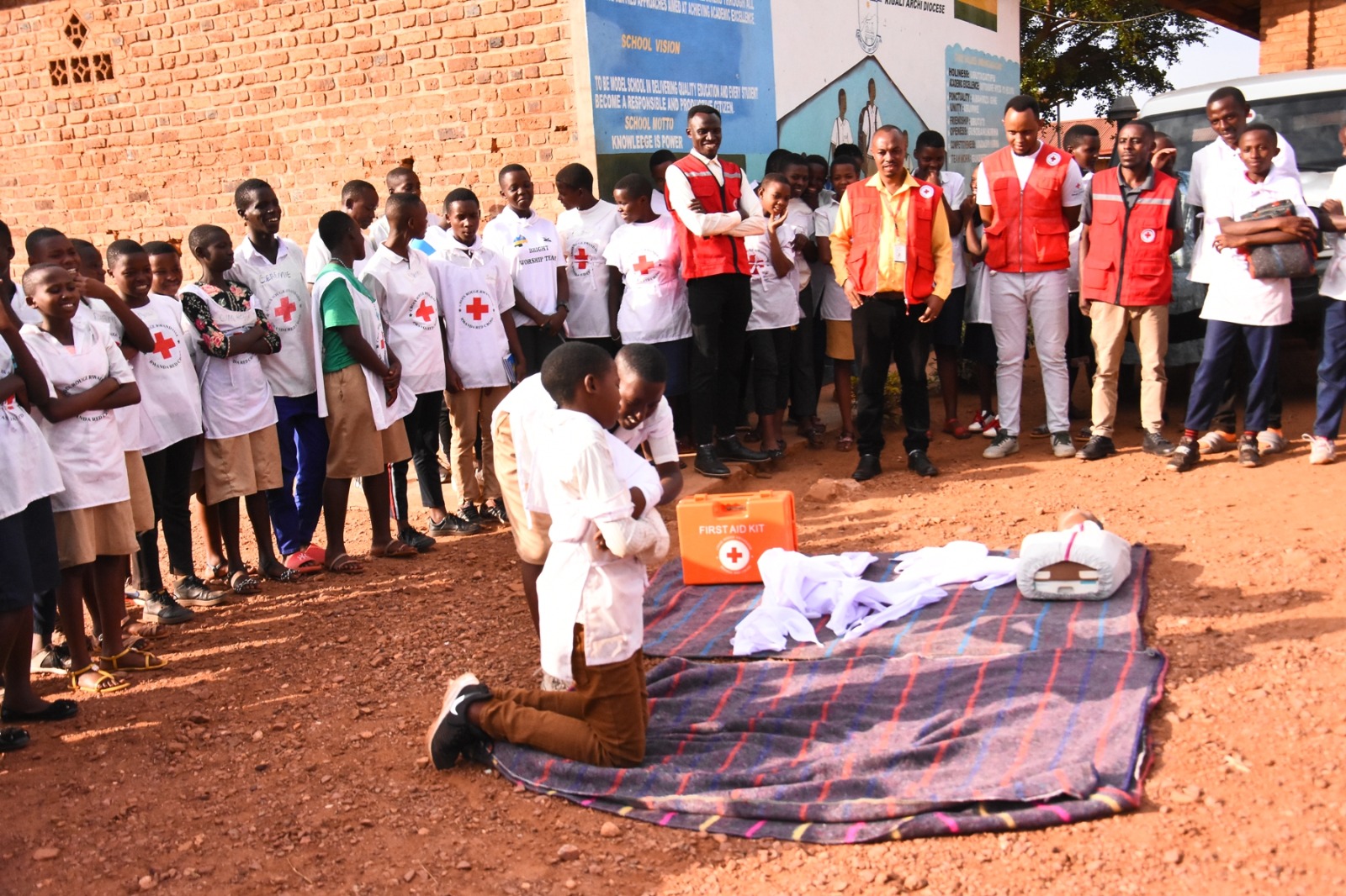 Abanyeshuri bize gufasha uwavunitse bakamurinda kubyimbirwa, guhagarika amaraso ku wakomeretse n’ubundi bufasha bukorwa mbere y’ uko imbangukiragutabara imugeraho.