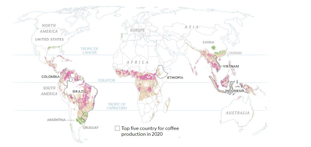 Hari aho ibi bimera byatangiye guhingwa harimo muri Georgia no muri Sicily mu Butaliyani, ariko aho bikenewe guhingwa ni henshi kurushaho.