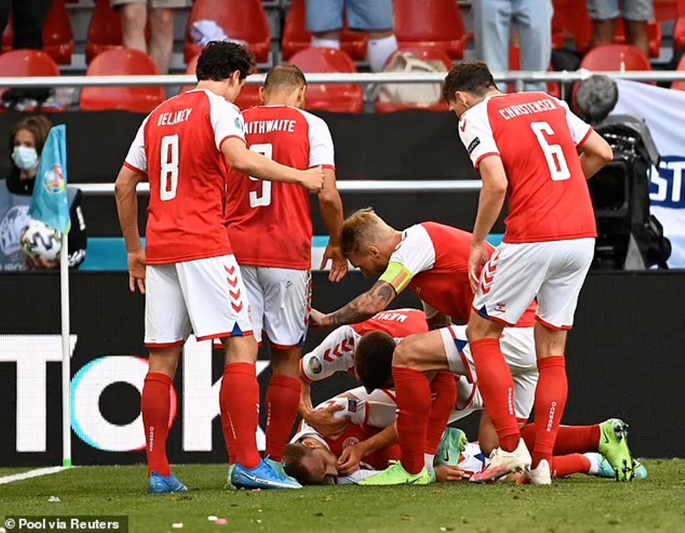 Eriksen usanzwe ukinira Inter Milan yo mu Butaliyani yaguye hasi ahagana ku munota wa 40, ubwo bajyaga kurengura umupira bamuganishaho. Nta mukinnyi wamugonze ngo wenda abe ariho hashakirwa impamvu.