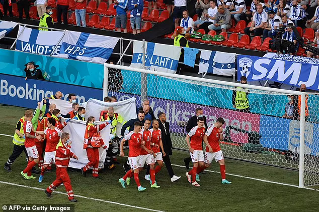 Nyuma y’umwanya muto, UEFA yaje gutangaza ko Eriksen yajyanywe mu bitaro ndetse ko arimo koroherwa.