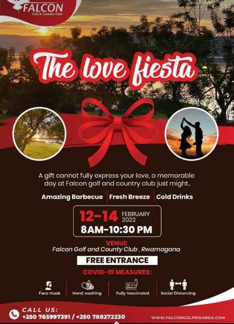 Harabura amasaha iminsi micye ngo abakunda ku isi hose bagirane ibihe byiza ku munsi wahariwe abakundana witwa Saint Valentin. Abakunda umukino wa Golf cyangwa kureba amazi magari bazishimira gusohokera ku kiyaga cya Muhazi ahari ikibuga cy’umukino wa Golf, bawukine kandi babone n’uburyo bwo kuroba ifi yo muri iki kiyaga bayibokereze.