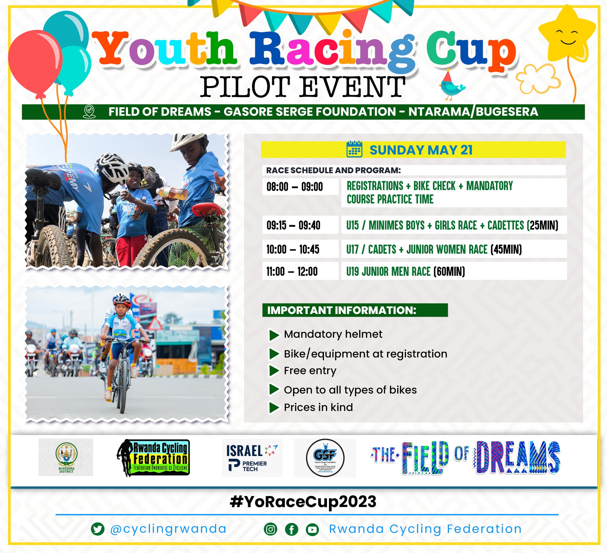Igikombe cy’abana bakina umukino w’amagare kiswe Youth Racing Cup, imikino yacyo ya mbere ikazabera mu Karere ka Bugesera ku Cyumweru taliki 21, Gicurasi, 2023.