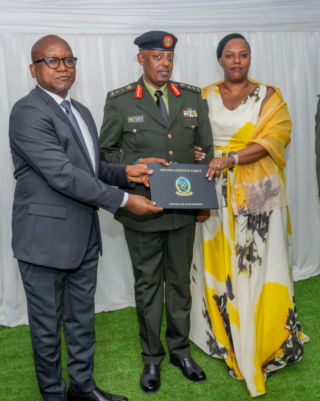 Mu izina rya Perezida wa Repubulika akaba n’Umugaba w’Ikirenga wa RDF Paul Kagame, Marizamunda yashimye abagiye mu kiruhuko cy’izabukuru ibikorwa by’indashyikirwa bakoreye u Rwanda.