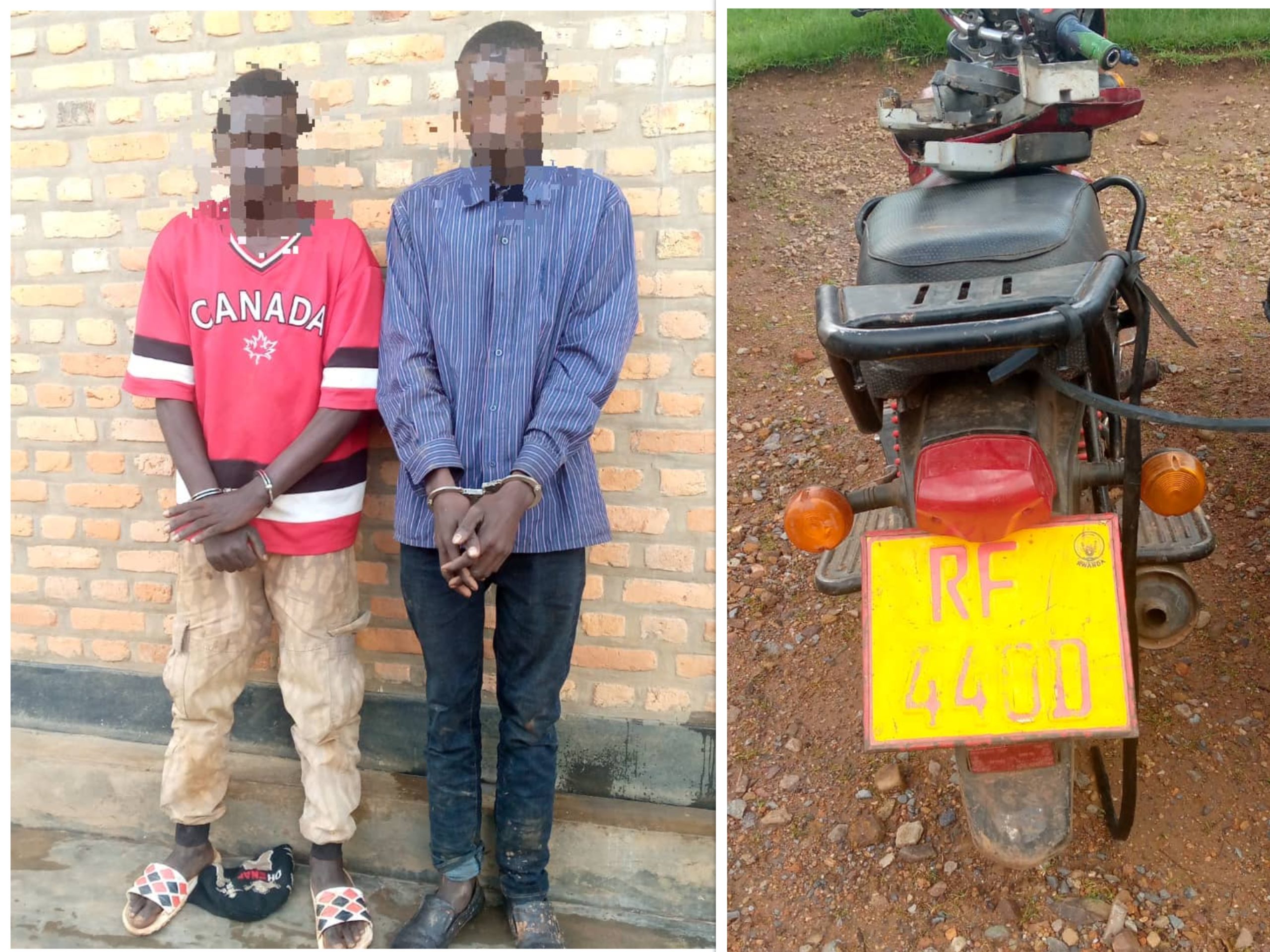 Ubwo bari barimo kujya mu biciro ngo bagurishe moto bivugwa ko bari bibye, abasore babiri baguwe gitumo na Polisi ihita ibambika amapingu. Bafatiwe mu Mudugudu wa Kamabuye, Akagari ka Jamba mu murenge wa Nyamiyaga mu Karere ka Gicumbi.