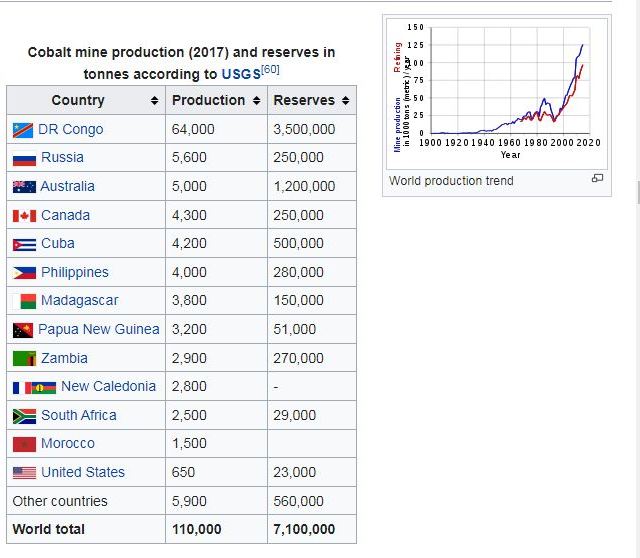 Repubulika ya Demukarasi ya Congo nicyo gihugu cya mbere ku isi gifite cobalt nyinshi hagakurikiraho u Burusiya.