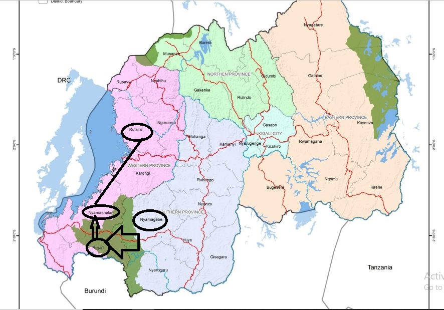 Mu Ntara y’i Burengerazuba, arasura Uturere twa Nyamasheke, Rusizi na Rutsiro.