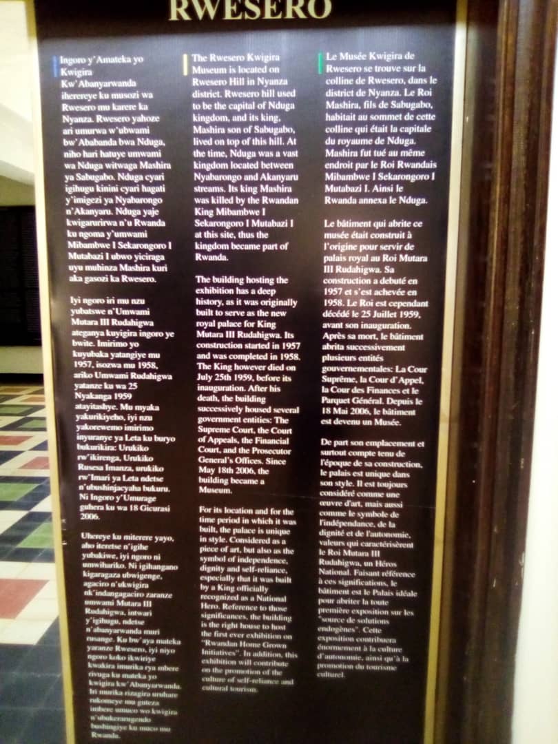 Rudahigwa yagizwe intwari y’u Rwanda bityo ngo iriya ngoro ni hantu hakwiye kwakira imurika ku mateka yo kwigira kw’Abanyarwanda muri rusange.