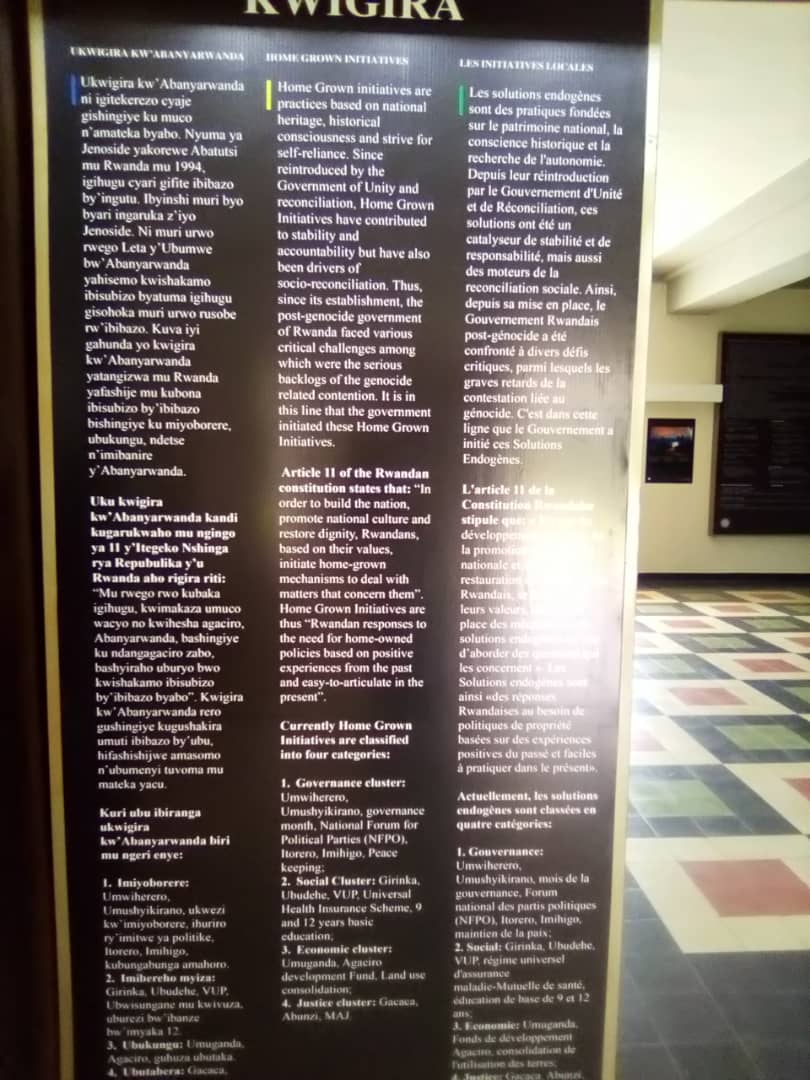 Mu ngoro yo Kwigira kw’Abanyarwanda hamuritswemo ingingo zibumbatiye ukwigira zikurikira: Itorero, Gacaca, Abunzi, Umuganda, Ubudehe, Imihigo, Umwiherero na Girinka.