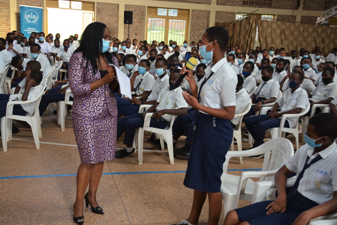 I Rwamagana rero abana bo mu rwunge rw’amashuri rwitiriwe Mutagatifu Aloys baganirijwe n’Umunyamabanga mukuru wungirije w’Urwego rw’Igihugu rw’ubugenzacyaha Madamu Isabelle Kalihangabo.