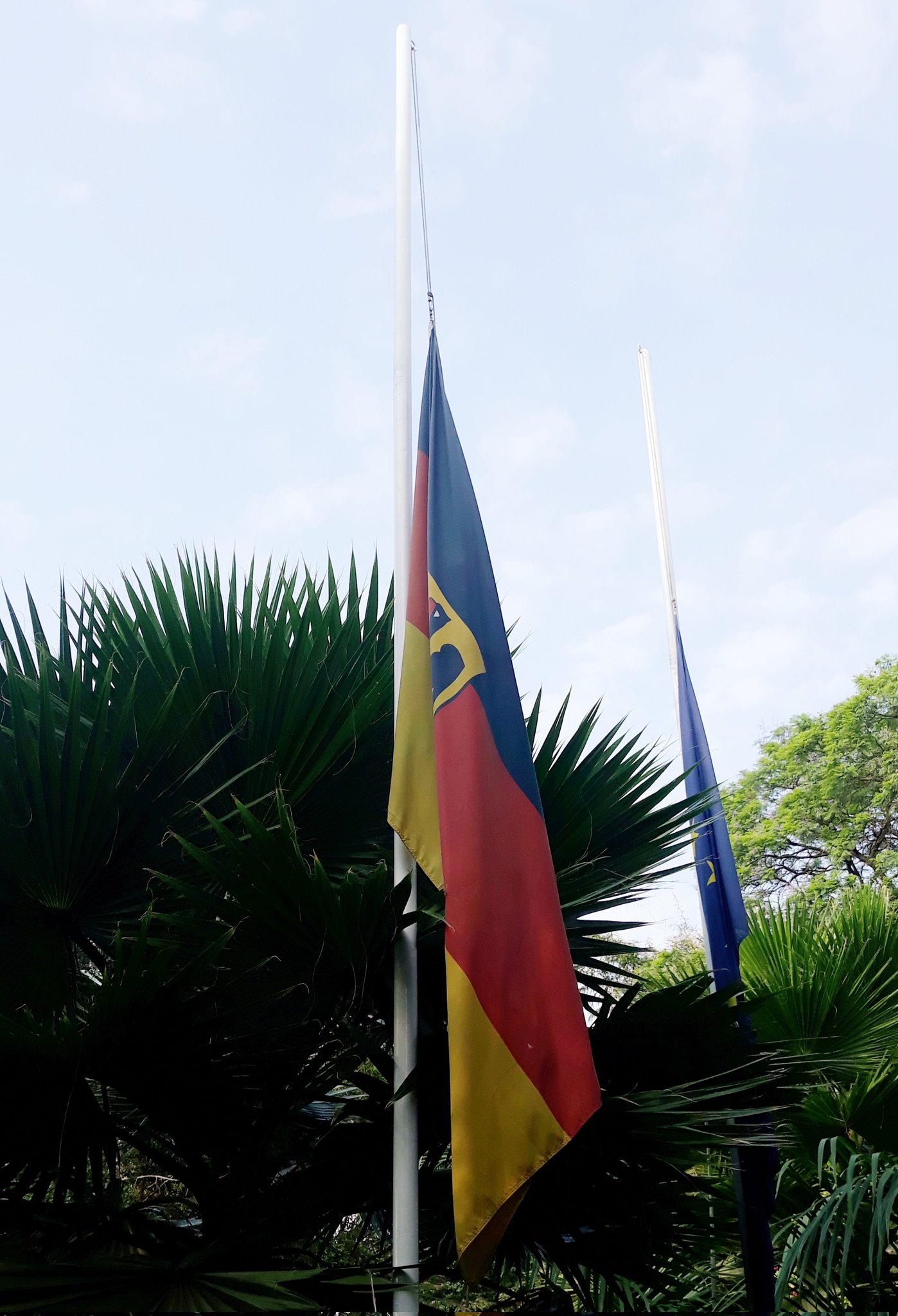 Inyubako zose ziriho ibendera ry’u Budage guhera muri icyo gihugu kugeza kuri za Ambasade zacyo mu mahanga, kuri uyu wa Gatanu ryururukijwe kugeza hagati mu kwibuka imyaka 60 ishize hubatswe Urukuta rwa Berlin.