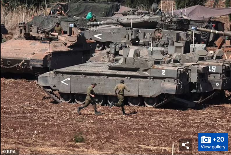 Ku mupaka wa Israel na Lebanon hari ibifaro bibarirwa mu magana byiteguye kwinjira muri Lebanon. Amafoto menshi arerekana abasirikare ba Israel bari hafi y’ibifaro byabo basa n’abiteguye amabwiriza yo kwinjira mu ntambara na Hezbollah.