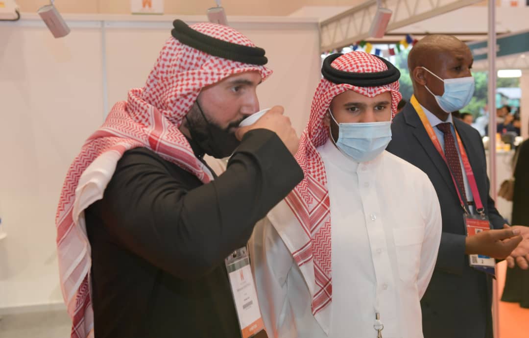 Amb. @ehategeka along with Minister Counsellor @edbizumuremyi participated in the opening of World Coffee exhibition Dubai happening at #Expo2020. They interacted with coffee buyers and lovers who came to 🇷🇼 stand to try #RwandaCoffee #WOCDUBAI #RwandaExpo2020 pic.twitter.com/eM1rfXpJzU