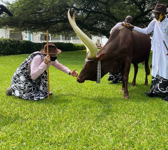 Ubwo yasuraga Inka z’Inyambo ziba ahitwa mu Rukari mu Karere ka Nyanza, Bwana Quest yasobanuriwe akamaro kazo mu muco n’amateka by’Abanyarwanda bo hambere.