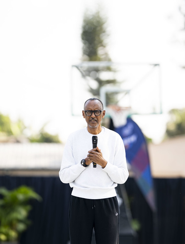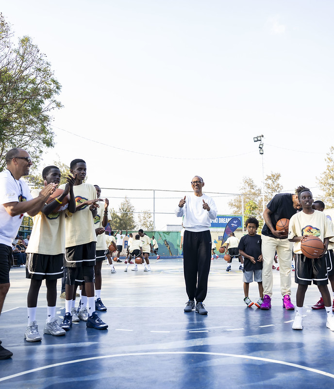 Perezida Paul Kagame yaraye asuye abana 50 bamaze iminsi batozwa gukina Basketball k’ubufatanye n’umukinnyi wa Basketball w’Umunyamerika uri mu bakomoye muri iki gihe witwa Kawhi Leonard.