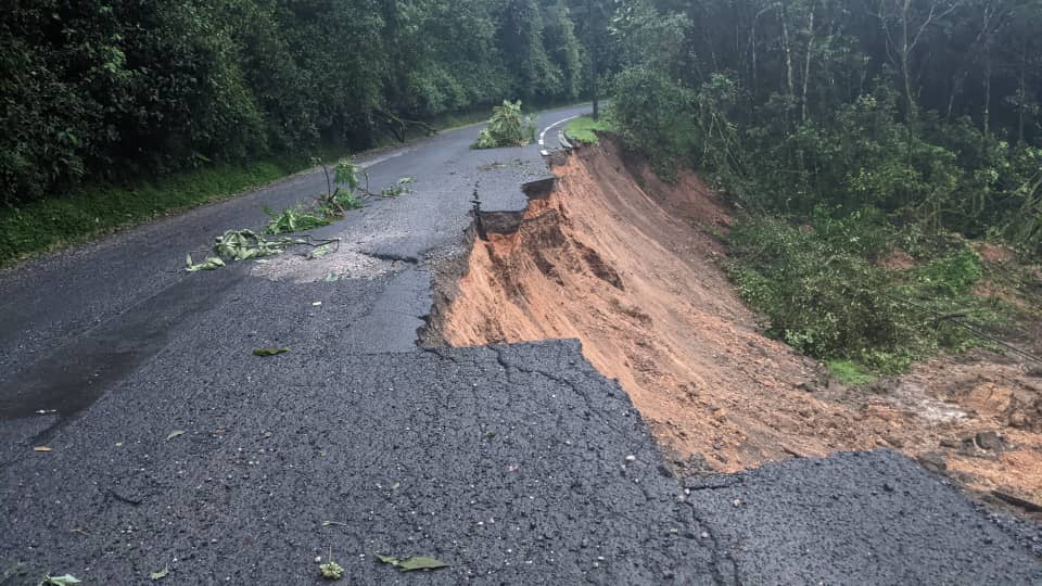 Umuvugizi wa Polisi, ishami rishinzwe umutekano wo mu muhanda, SP Emmanuel Kayigi, yatangarije Kigali Today ko uyu muhanda wangiritse kubera imvura nyinshi yaraye iguye, bituma ucikamo kabiri igice kimwe kiratwarwa.