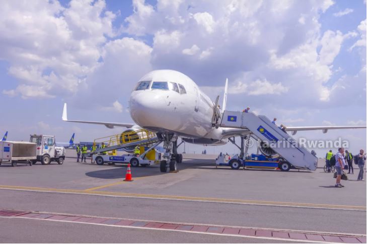 Ahagana saa sita z’amanywa nibwo indege ya Boeing 777 yari igeze ku kibuga cy’indege cya Kigali izanye ba mukerarugendo 77 baje kwinjiriza u Rwanda amadevize menshi bitewe n’igihe bazamara basura ahantu nyaburanga hakomeye.